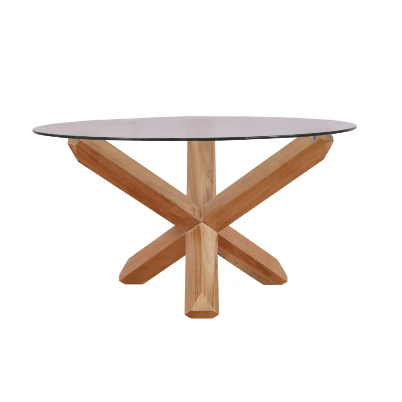 DT-05 Round Dining Table with Glass Top: A Fusion of Modern Elegance and Rustic Charm
