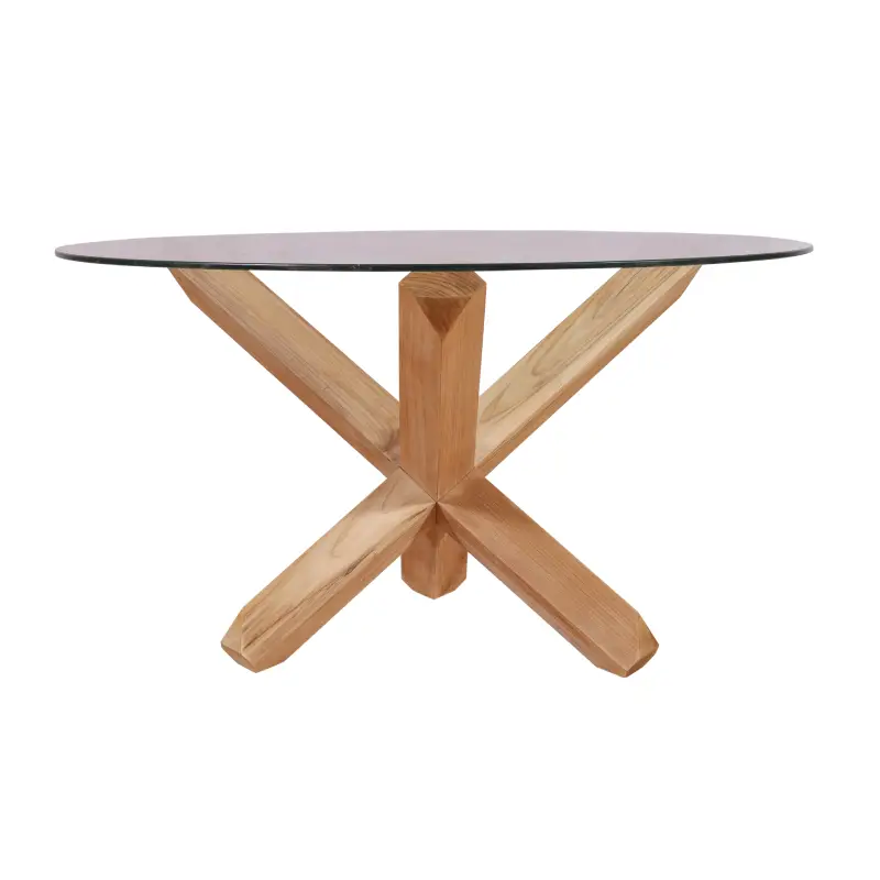 - Unique X-Shaped Teak Base: The base is designed in a distinctive X-shape that not only provides excellent stability but also adds a striking visual element to the table. It’s a perfect blend of form and function.